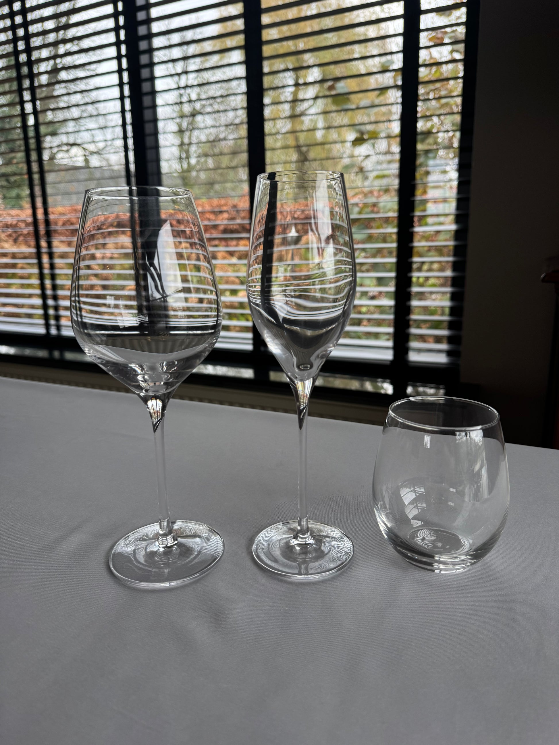 - Glazenset bestaande uit een waterglas, een wijnglas en een champagne flute